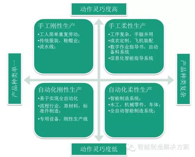 X向表示产品种类的复杂程度;Y向表示生产工序要求动作的灵活程度