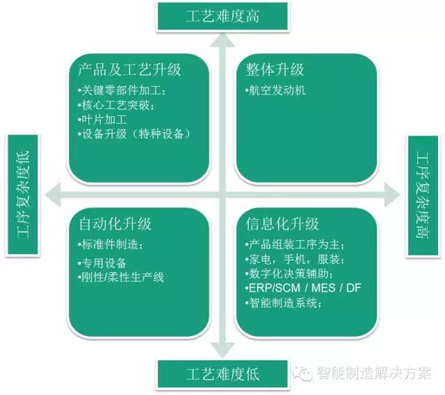 中国制造企业转型升级应该始终围绕着工艺提升展开,特别是工业产品生产商。将X轴定义为工序复杂程度,将Y轴定义为工艺难度,以此区分不同行业的技术难点。